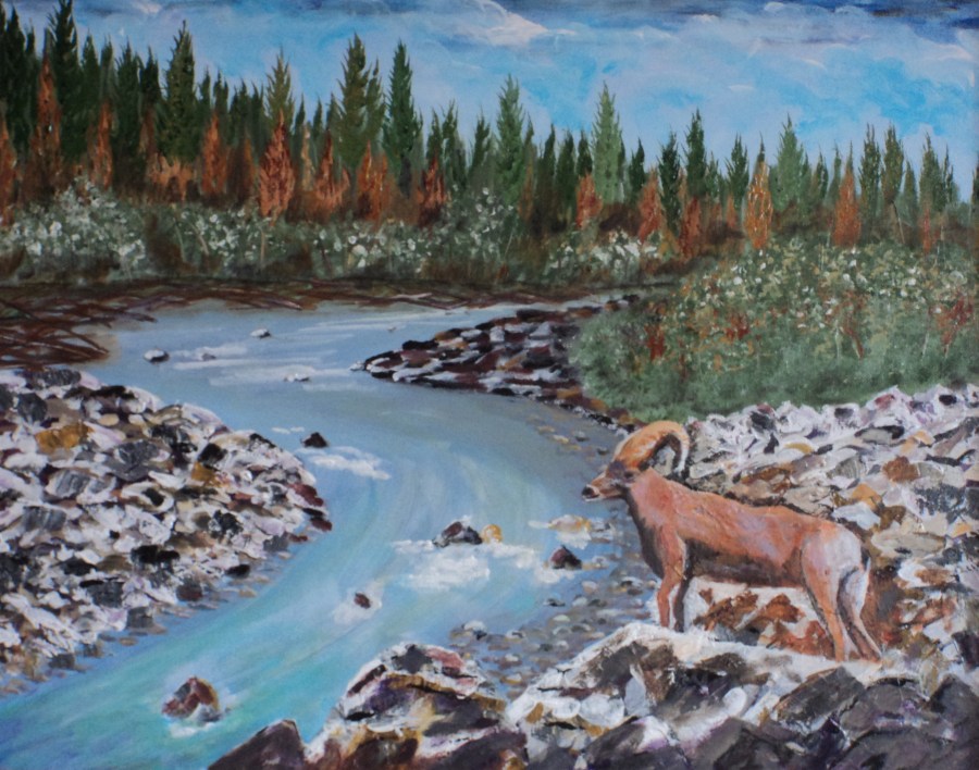 Big Horn on the Kananaskis, #16017, $950, Acrylic, 16×20
