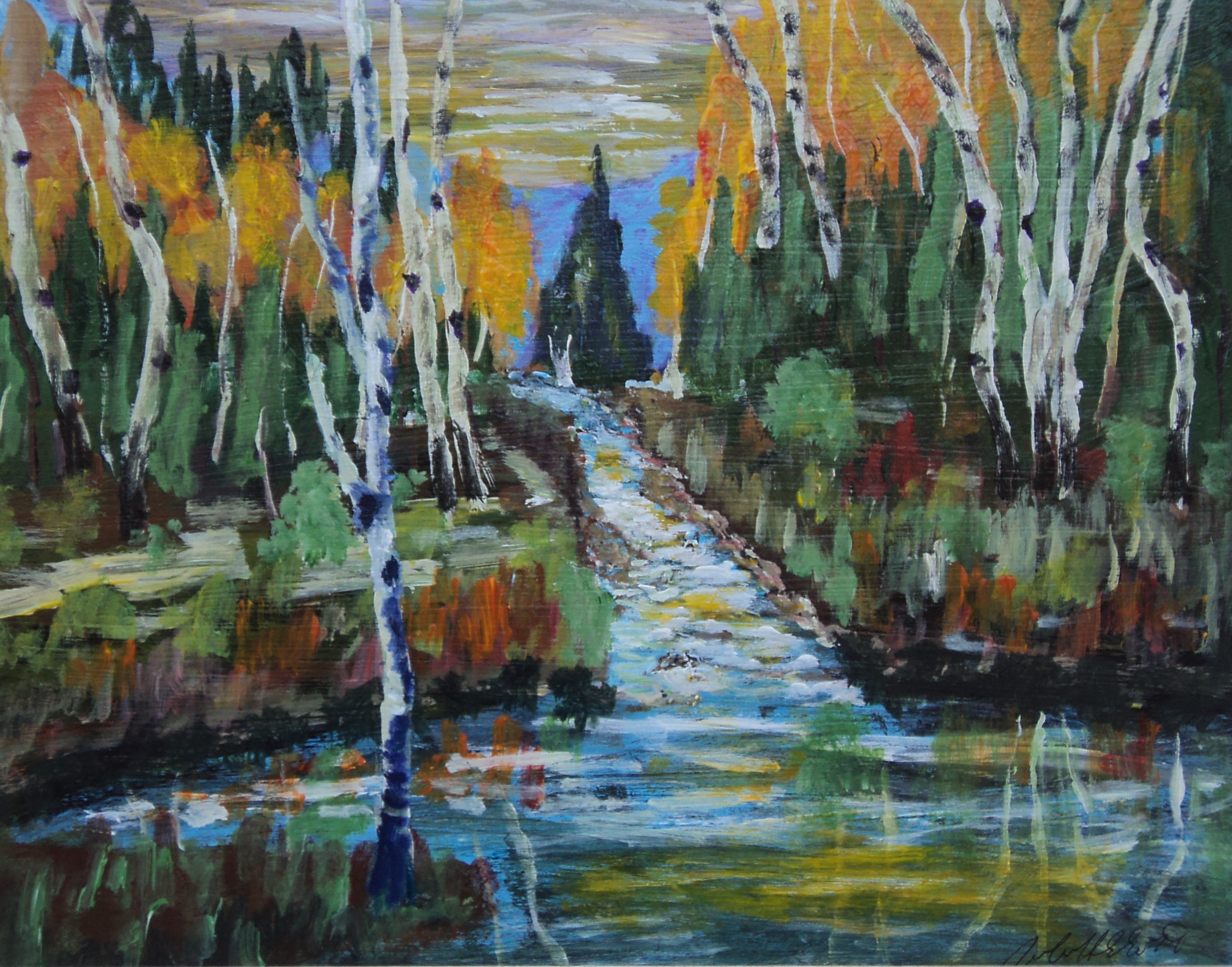 Birches by the River, #17076, $460, Acrylic, 11×14