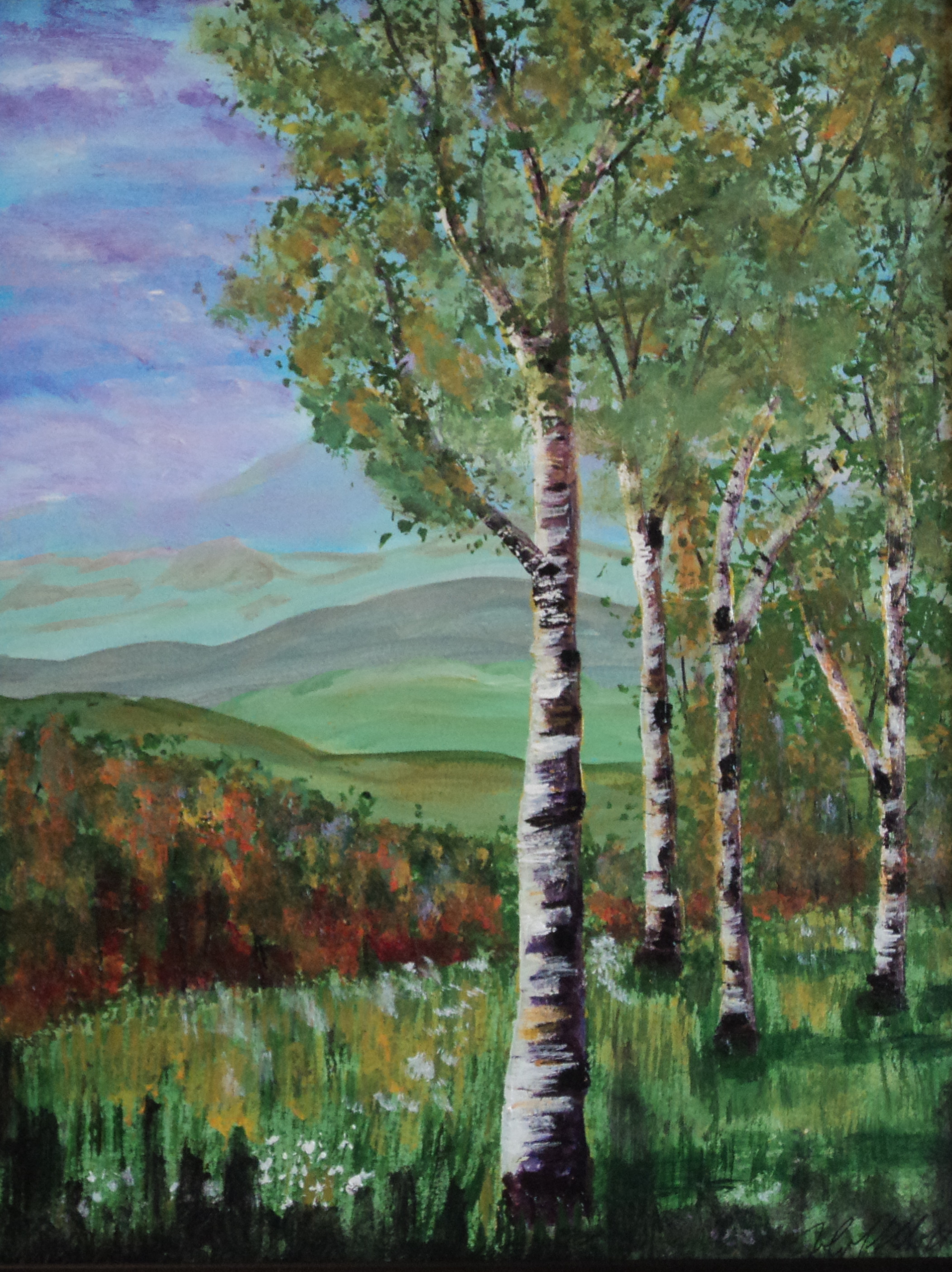 Birches Sentinel, #17014, $460, Acrylic, 11×14