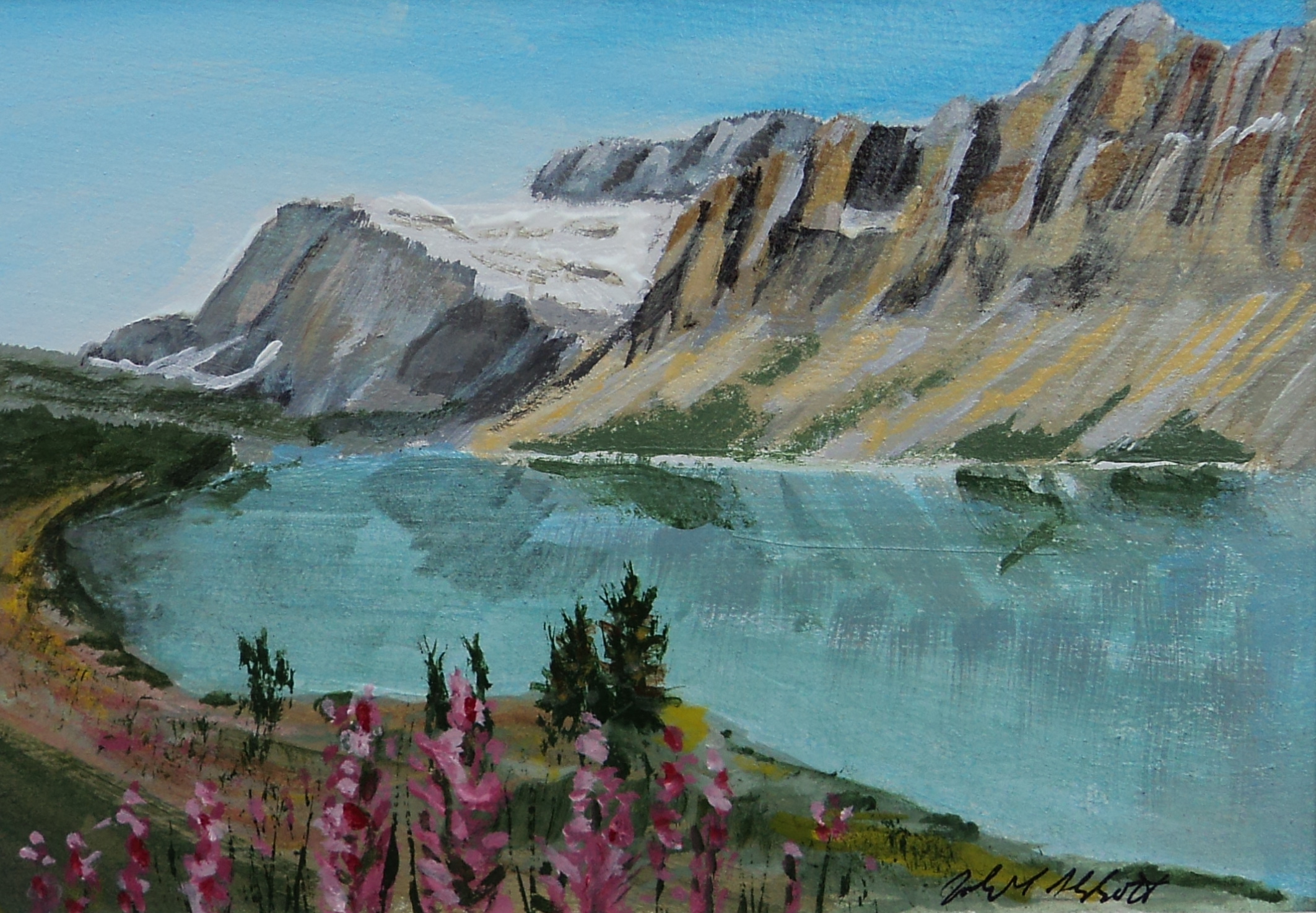 Bow Lake, Acrylic, 4.5×6.5, $90