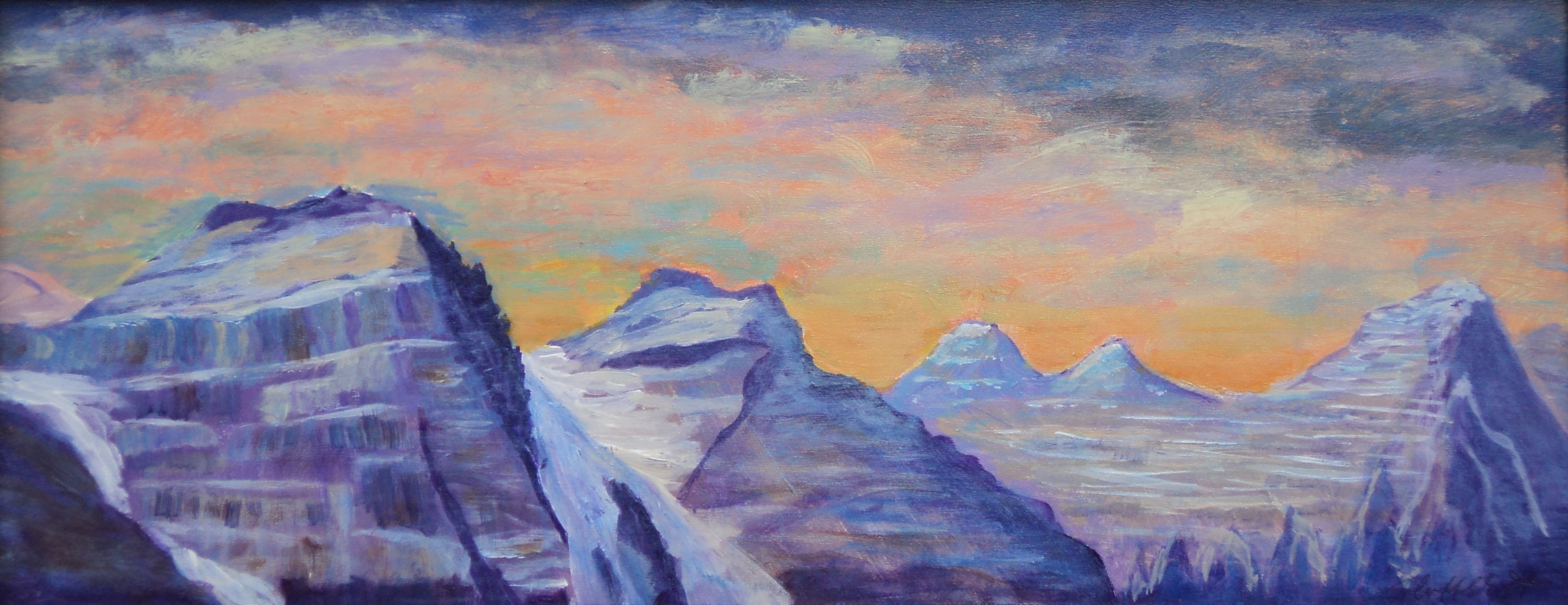 Moraine Lake Peaks. #17087, $480, Acrylic, 8×20