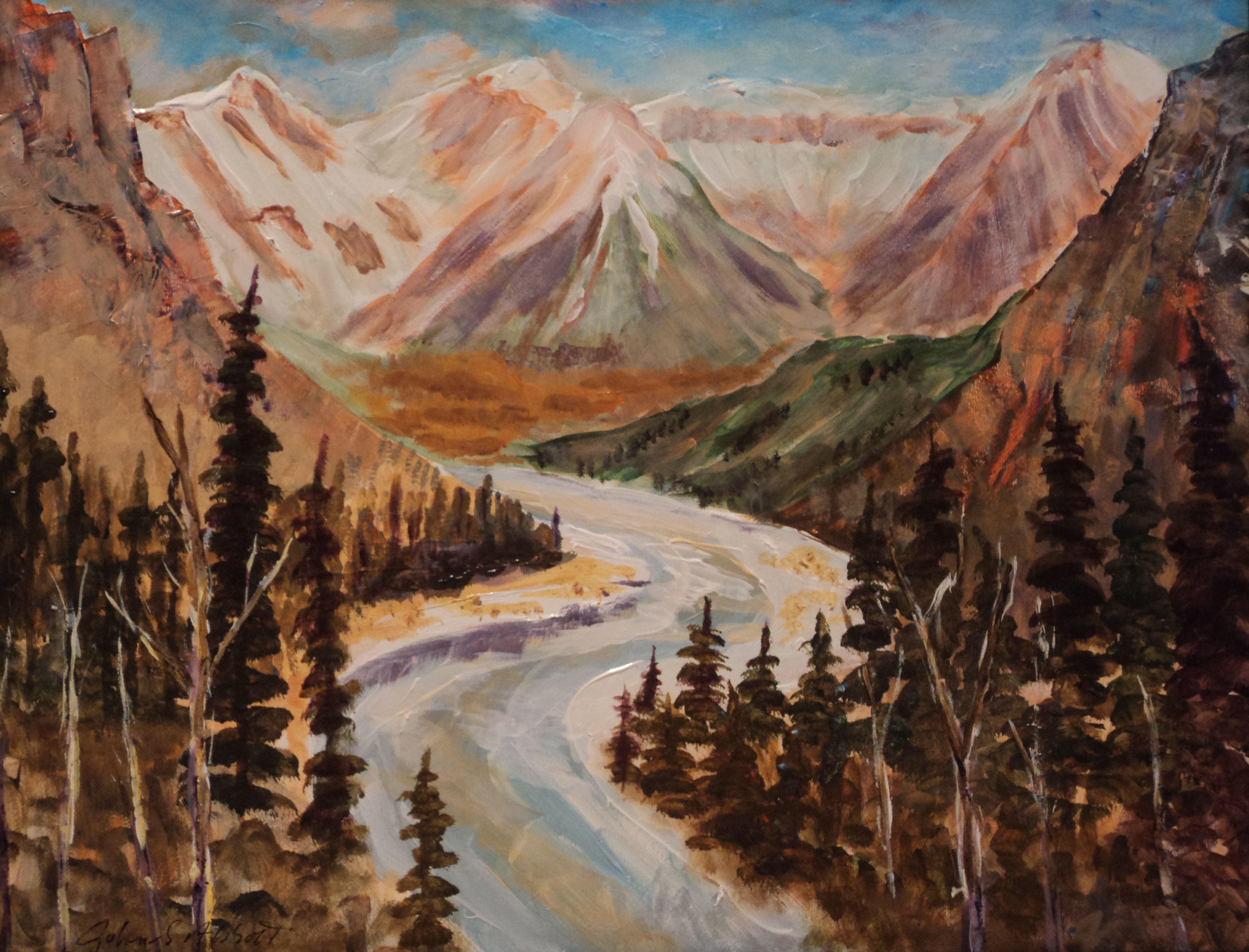the million dollar view, banff fairmont, #19001, $460, acrylic, 11×14