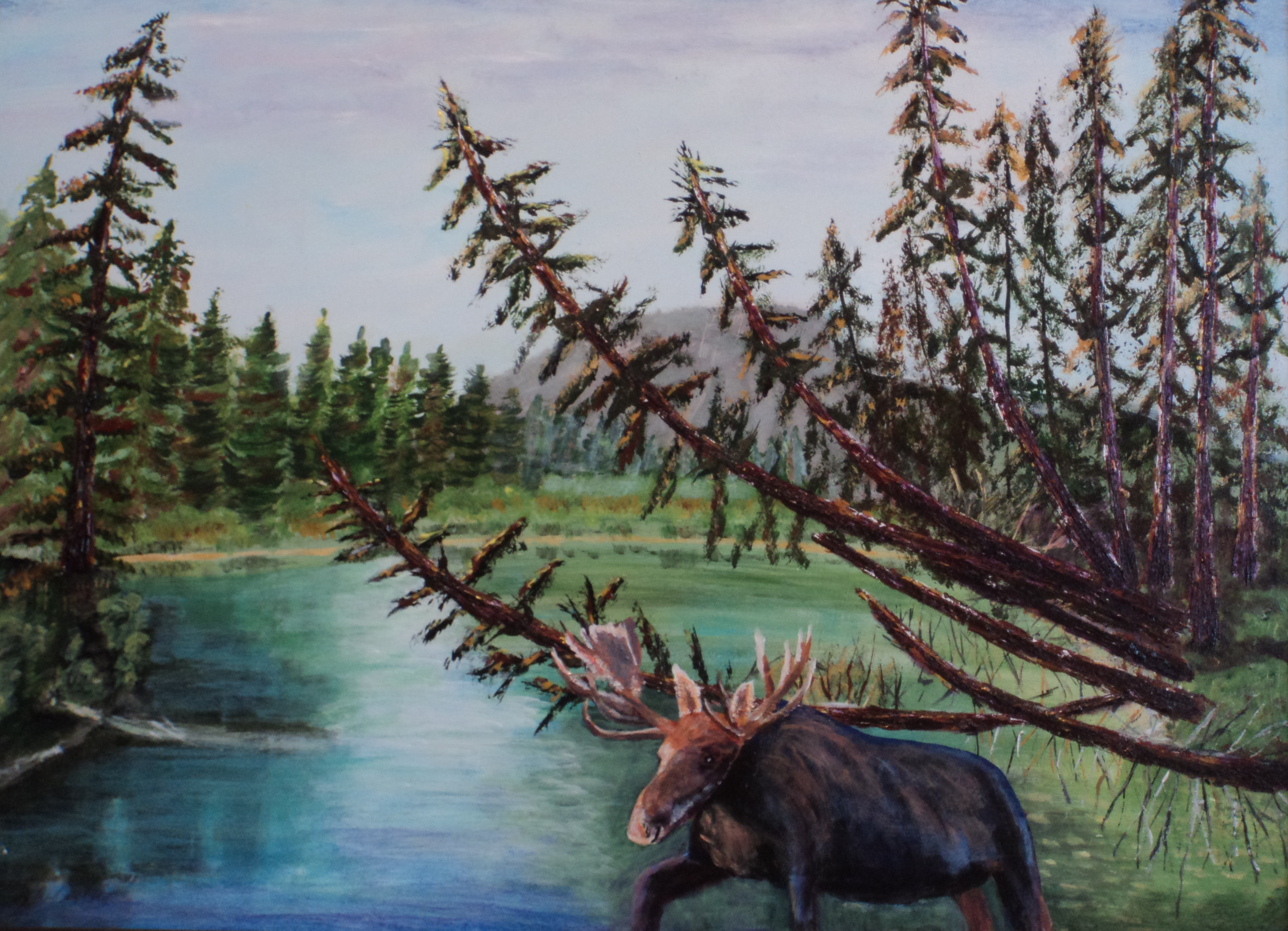 Visitor to Vermillion Lakes Creek, #15045, $1300, Acrylic, 18×24