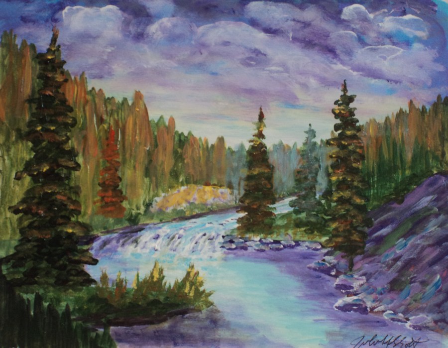 Rocky Mountain Waterfall, #18031, $540, Acrylic, 12x15