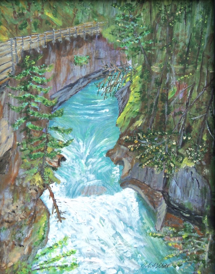 Sheep River Falls & Whiskey Lake, Acrylic, 10x20, $250