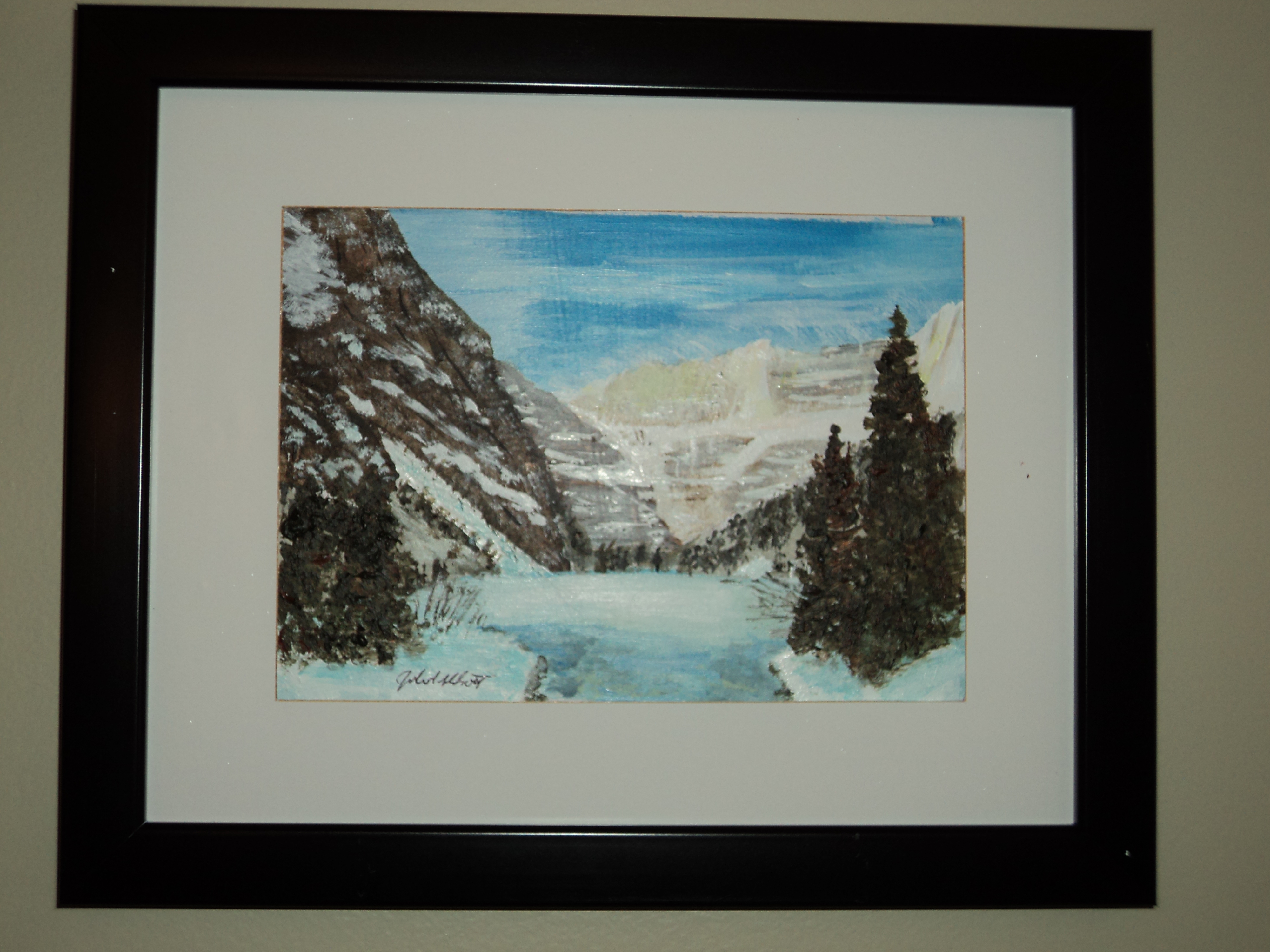 Lake Louise in Winter, Acrylic, 7×5 inches, $50