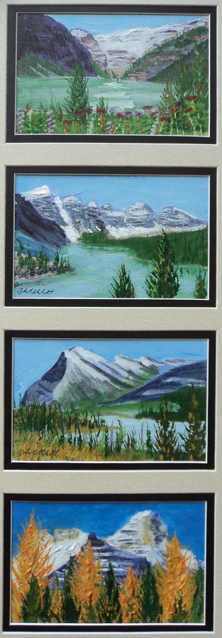 Louise,Moraine,Rundle,Assiniboine, Acrylic, 4x6x4, $295 #16038
