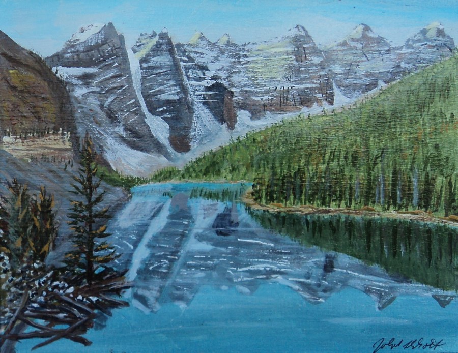 Moraine Lake 4 and the Valley of 10 Peaks, Acrylic, 8×10, $250