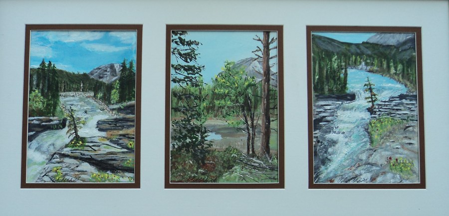 Sheep River Falls & Whiskey Lake, Acrylic, 10×20, $250