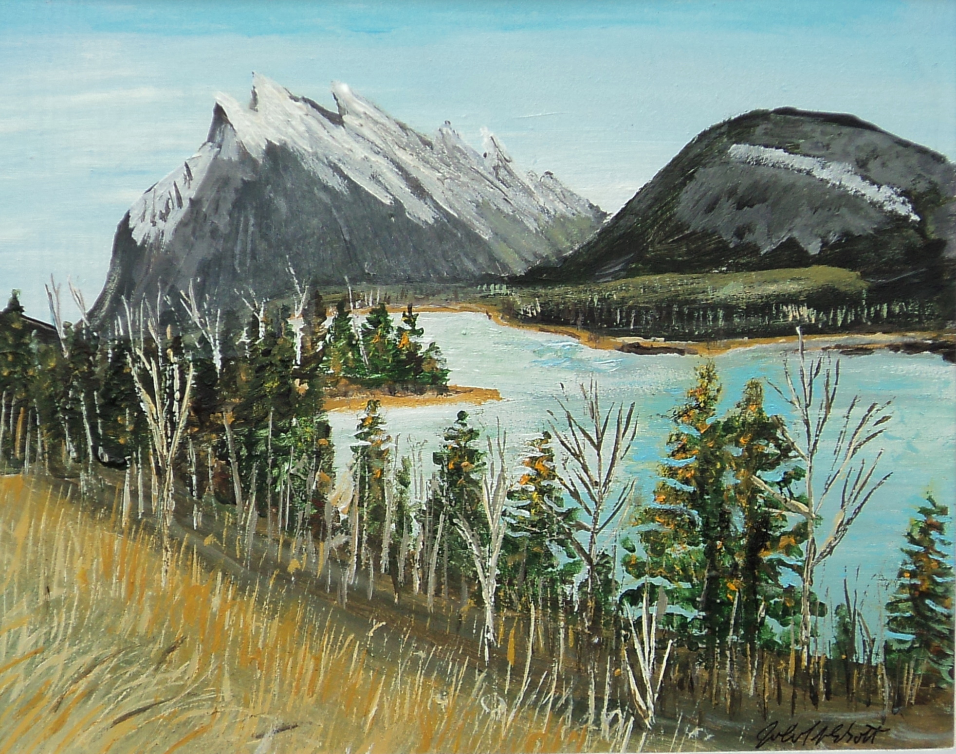 Vermillion Lake, Mt. Rundle, Acrylic, 8×10, $240